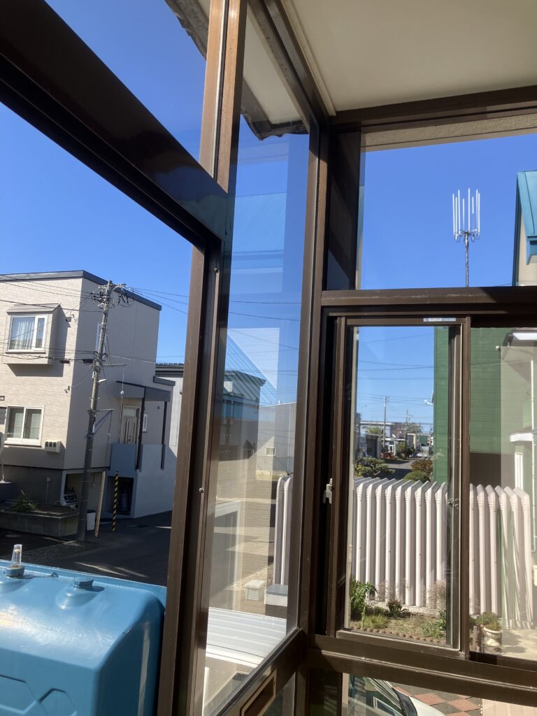 石狩市花川南にて、玄関フードのガラスクリーニングをさせていただきました。