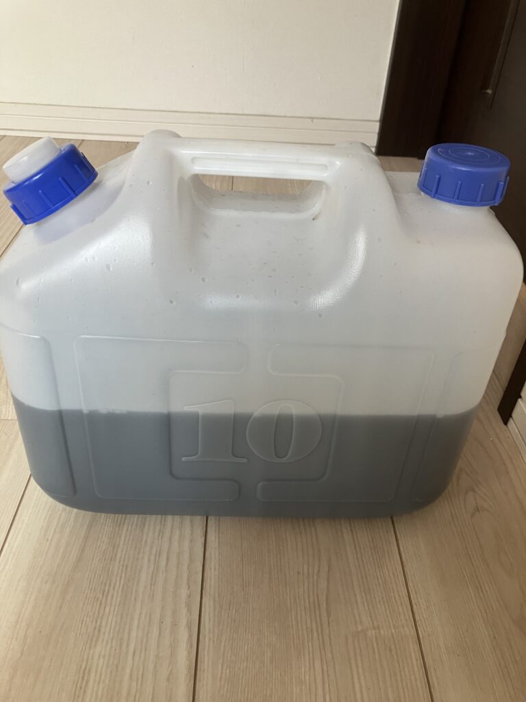 カビで真っ黒な洗浄した汚水は持ち帰り処分いたします。